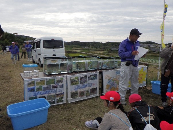 ・開催日 :10月30日(木) ・開催場所 :淡路市立浦小学校・奈良町池 ・内容 :小学4年生を対象にため池教室※を実施 ※ため池の役割やため池に棲む生物等について学習 ・参加人数 :30人 ・イベントの様子 : 参加者の感想:ため池教室を楽しみにしていて、どういう生き...