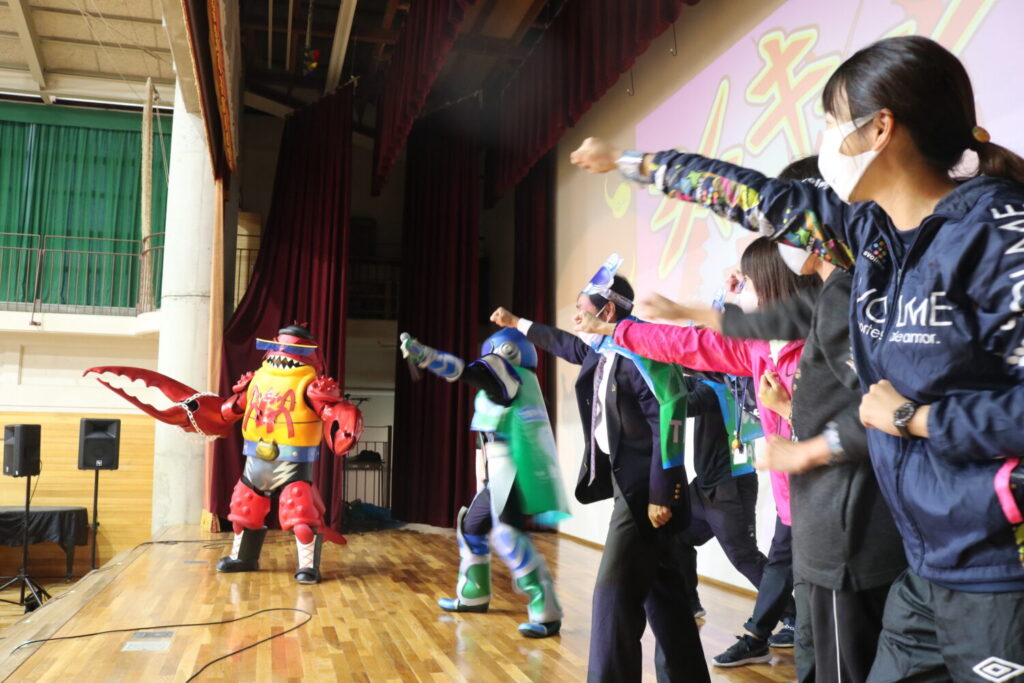 最後は、先生も含めてみんなでため池マンに変身し、合い言葉「ひょうごのため池はぼくたちが守る!」で団結しました。あっという間の90分でした。