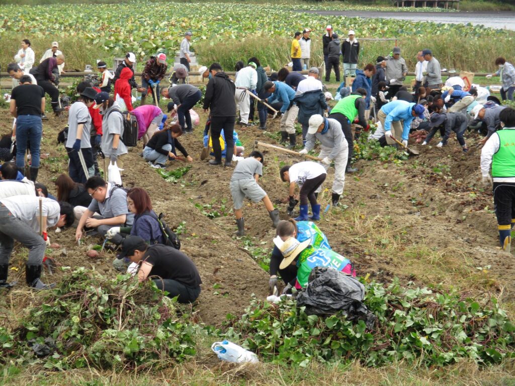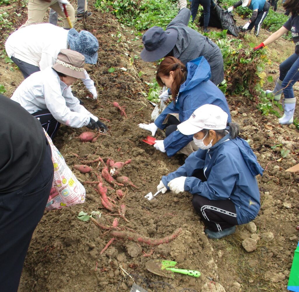 さつま芋収穫体験は、みんなで協力し合いながら収穫作業を行いました。収穫作業後、参加者に「やきいも」をプレゼント、実りの秋を感じる1日でした。清掃活動とさつまいもの収穫体験を合わせて実施しているので、多くの参加者が集まり、ため池などの地域環境をみんなで守ろうという意識が広まりました。
