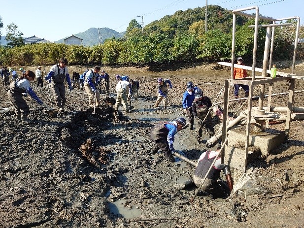 ・参加人数 :田主9名 町内会5名 消防団7名 淡路信用金庫3名 ㈱成田3名 洲本土地改良事務所5名 土地改良事業団体連合会3名 計35名
