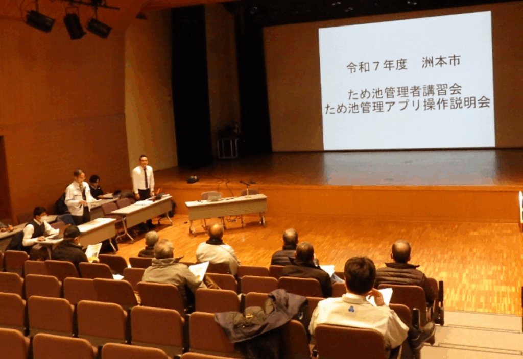 洲本市では、洲本市五色町の五色文化ホール(五色庁舎3階)にて、下記のとおり2日間の日程で「令和7年度ため池管理アプリ操作説明・管理者講習会」が開催され、午前の部、午後の部の計4回、合計92名の方々にご参加いただきました。
