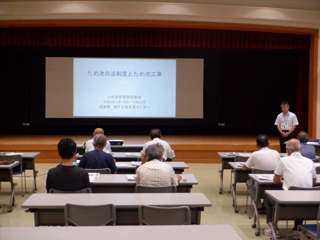 7月18日(火)に神戸北文化センター、7月25日(火)に西神文化センターにて「令和5年度 ため池管理者研修会」が開催され、研修会には神戸市内から2会場合計で43名の管理者にご参加いただきました。